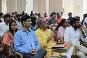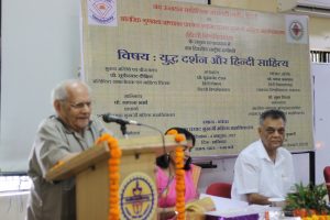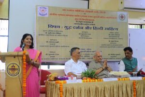 प्रो. सुशील शर्मा ने ‘कृष्ण काव्य और युद्ध दर्शन’ पर बात की। मुख्य वक्ता के रूप में प्रो. पवन अग्रवाल ने विषय के व्यावहारिक पक्ष को उद्घाटित किया। उन्होंने युद्ध दर्शन का मूल धर्म-स्थापना, मानव-हित और स्त्री-उत्थान को बताया। विभिन्न साहित्यिक साक्ष्यों से अपनी बात को स्पष्ट करते हुए उन्होंने कहा कि वीरता के लिए अस्त्र आवश्यक नहीं है, बल्कि भाषा भी शक्तिशाली अस्त्र है। प्रो. टंडन ने स्वदेश, स्वमूल्य, स्वत्व, स्वाभिमान की रक्षा को युद्ध की आधारशिला बताया गया। उन्होंने युद्ध से जुड़े अनुशासनों पर भी बात की।