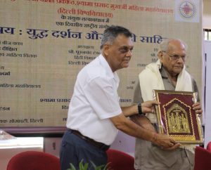 4 अक्तूबर, 2025 नई दिल्ली| “युद्ध शाश्वत सत्य है| यह युद्ध चाहे भीतरी शत्रु से हो, चाहे बाहरी शत्रु से|युद्ध की शुरुआत व्यक्ति के अपने संघर्ष से ही होती है| समय तथा समाज में परिवर्तन से युद्ध के रूपों में भी परिवर्तन आया है|युद्ध दर्शन से जुड़ी साहित्यिक कृतियाँ हमें ज्ञान संपदा, हमारी सांस्कृतिक विरासत एवं भारतीय ज्ञान परंपरा से जोड़ती हैं|” ये शब्द नव उन्नयन साहित्यिक सोसायटी और आंतरिक गुणवत्ता आश्वासन प्रकोष्ठ, श्यामा प्रसाद मुखर्जी महाविद्यालय, पंजाबी बाग, दिल्ली के संयुक्त तत्त्वावधान में महाविद्यालय के सभागार में ‘युद्ध दर्शन और हिंदी साहित्य’ विषय पर आयोजित एक दिवसीय राष्ट्रीय संगोष्ठी में मुख्य अतिथि प्रो. सूर्यप्रसाद दीक्षित (प्रतिष्ठित समालोचक एवं साहित्य चिंतक, लखनऊ) ने कहे।