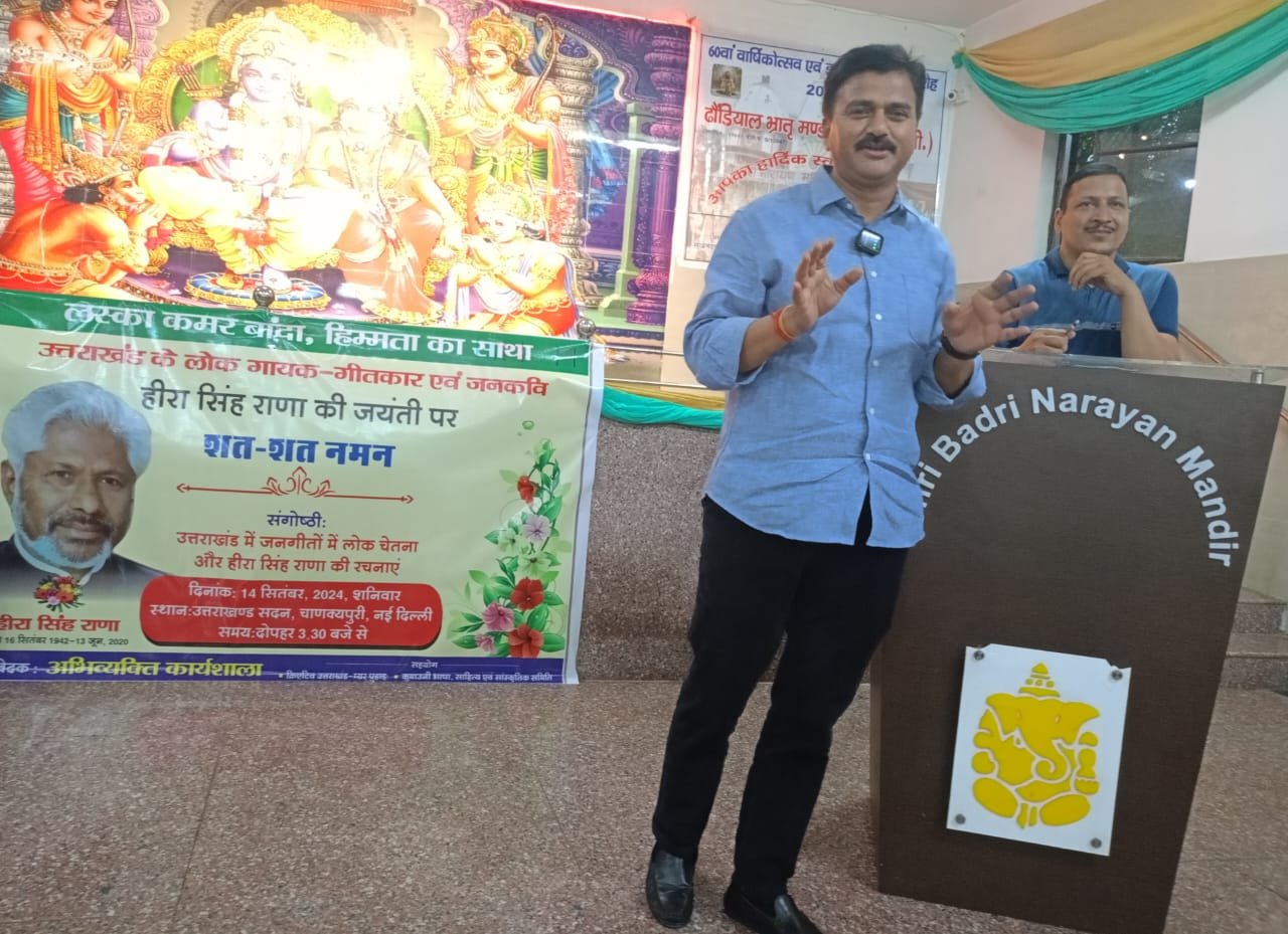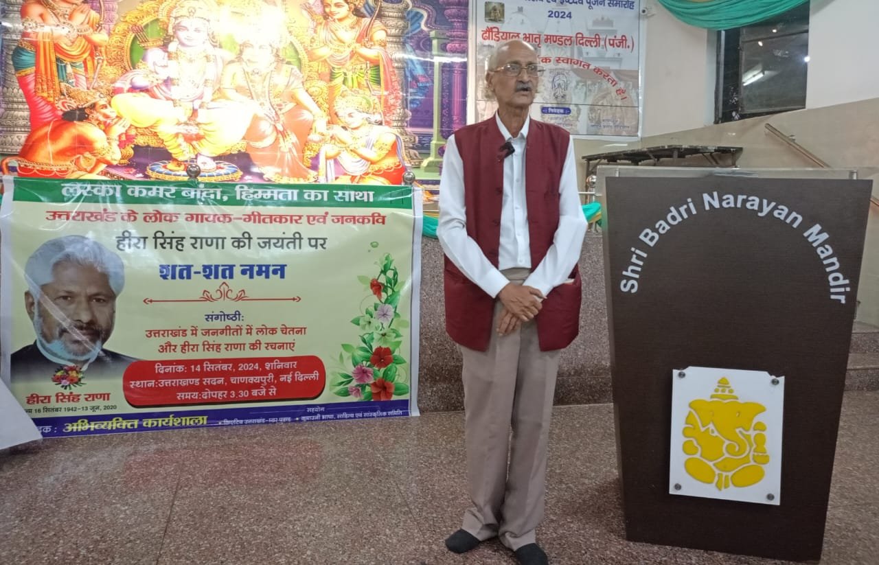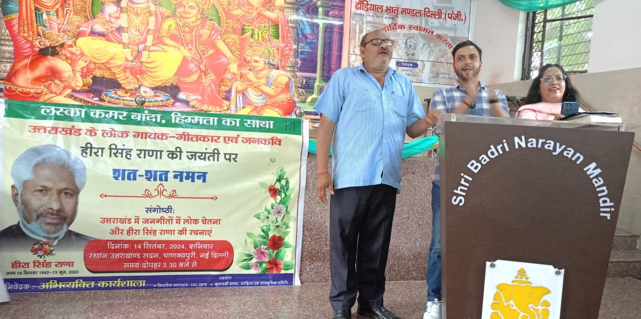 आयोजन के इस अवसर पर ‘उत्तराखंड के जनगीतों में लोक चेतना और हीरा सिंह राणा की रचनाएं’ विषय पर एक यादगार संगोष्ठी आयोजन वरिष्ठ लेखक और साहित्यकार रमेश घिल्डियाल की अध्यक्षता में की गई।