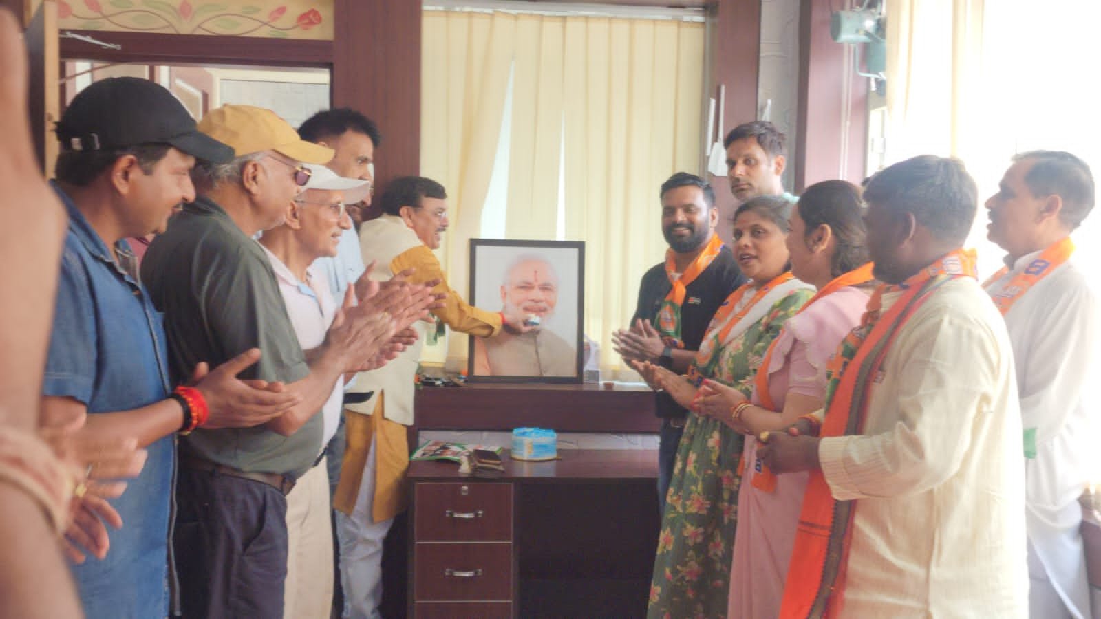 ..किच्छा:- देश के यशस्वी प्रधानमंत्री नरेंद्र मोदी के 74वें जन्मदिवस के शुभ अवसर पर पूर्व विधायक राजेश शुक्ला ने नगर मंडल के कार्यकर्ताओं के साथ मिलकर उनके चित्र पर तिलक कर एवं केक काटकर उनके स्वस्थ एवं दीर्घायु जीवन की कामना की। इस अवसर पर शुक्ला ने प्रधानमंत्री मोदी के नेतृत्व में देश की प्रगति और विकास की दिशा में उठाए गए अद्वितीय कदमों की सराहना की और उनके प्रति आभार प्रकट किया।