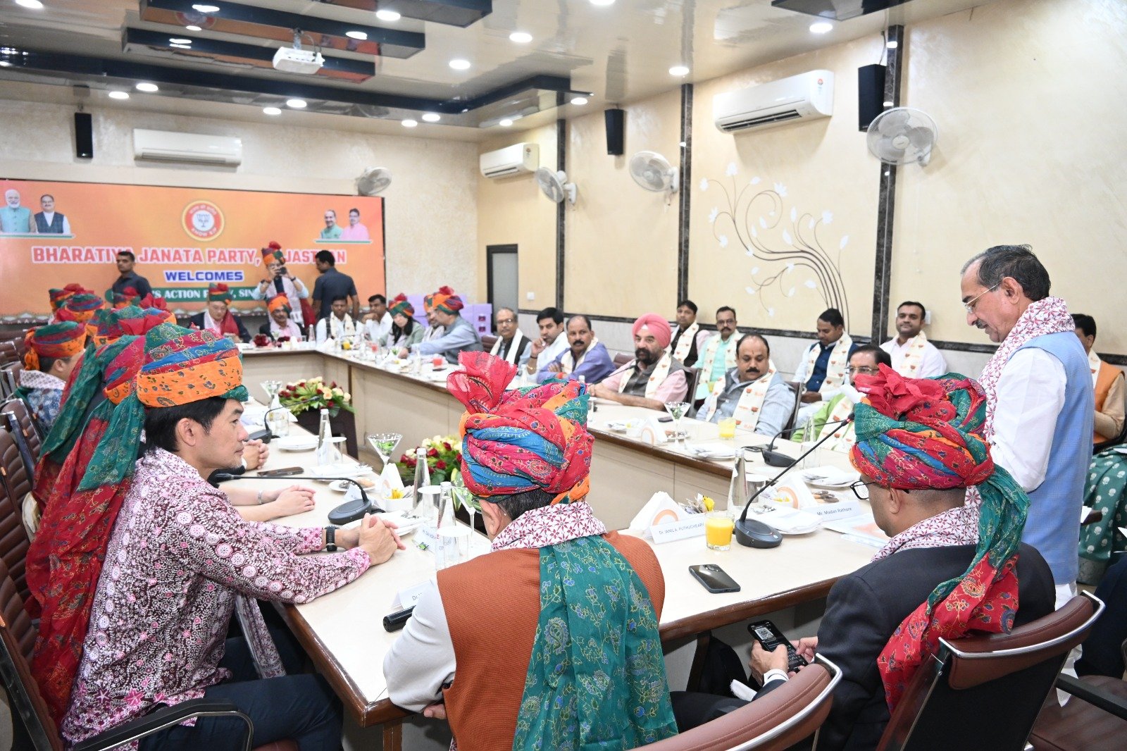 भाजपा प्रदेश कार्यालय प्रभारी और कार्यक्रम नोडल अधिकारी मुकेश पारीक ने बताया कि भाजपा प्रदेश उपाध्यक्ष मोतीलाल मीणा, सरदार अजयपाल सिंह, भाजपा प्रदेश महामंत्री जितेंद्र गोठवाल, प्रदेश मंत्री पिंकेश पोरवाल, भूपेंद्र सैनी, भाजपा प्रदेश मीडिया संयोजक प्रमोद वशिष्ठ, आईटी संयोजक अविनाश जोशी, सोशल मीडिया सह संयोजक अजयविजयवर्गीय ने सिंगापुर डेलीगेशन का स्वागत किया। कार्यक्रम के अंत में राज्यसभा सांसद घनश्याम तिवाड़ी ने डेलीगेशन को धन्यवाद ज्ञापित किया।